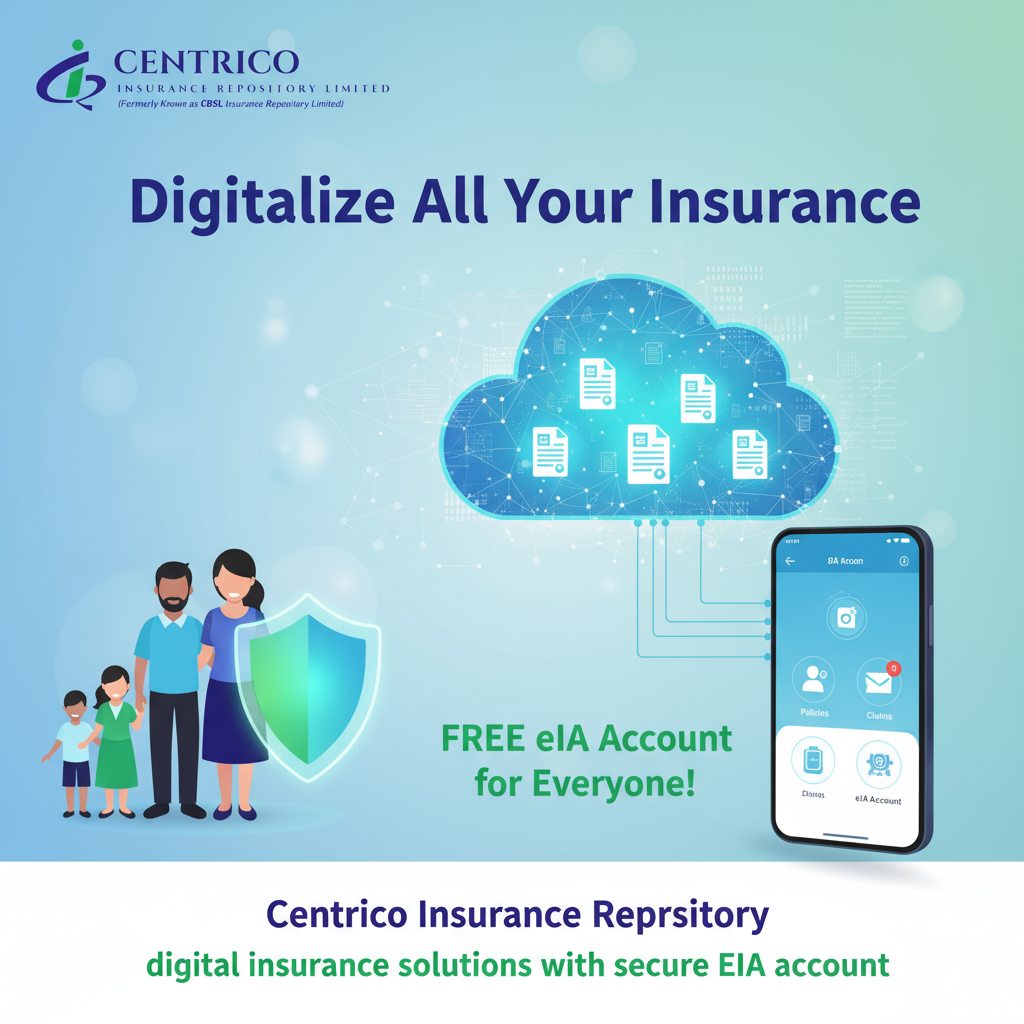 Open your e-insurance account (eIA) easily with Centrico Insurance Repository Limited. Learn how to open an e-insurance account online to store, manage, and access all your life, health, and motor insurance policies securely in one digital place. Enjoy free eIA account opening, paperless policy management, instant updates, and 24/7 access. Protect your insurance documents with a government-approved, secure digital vault for hassle-free claims and policy servicing anytime, anywhere.