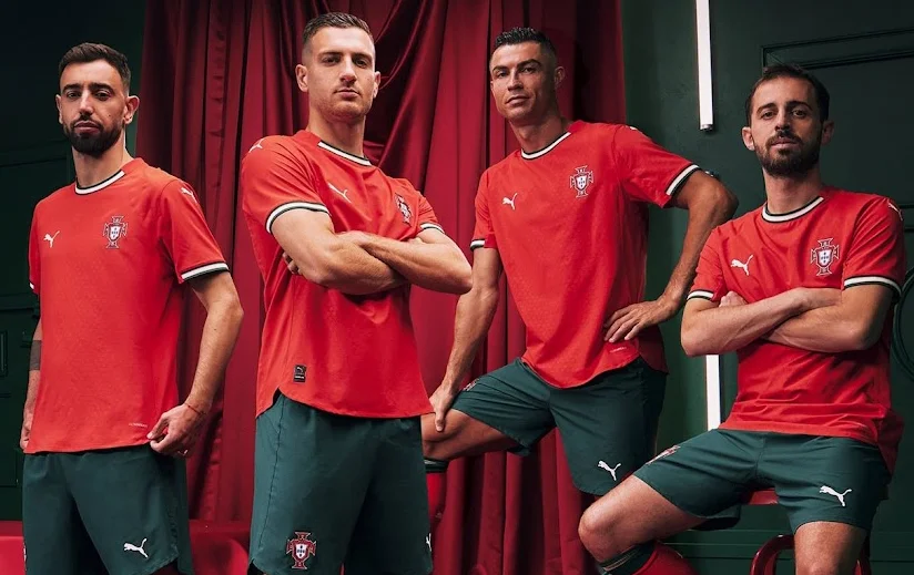 Wat de 2025-2026 Portugal Thuisshirt uniek maakt, is een subtiel patroon over het gehele shirt, geïnspireerd door het kruis van het embleem van het team. Het shirt heeft een klassieke rode basiskleur, met opvallende groene en gouden details. Het patroon geeft een herinterpretatie van het Quinas-embleem, afgeleid van het nationale wapen van het land. De kit is compleet met een eenvoudige ronde hals. Zowel de hals als de mouwboorden zijn voorzien van zwart/wit gestreepte details.