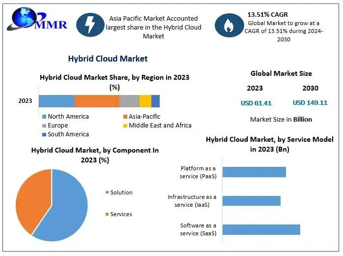The global hybrid cloud market, valued at USD 61.41 billion in 2023, is anticipated to grow at a compound annual growth rate (CAGR) of 13.51%, reaching approximately USD 149.11 billion by 2030. This growth is propelled by the increasing need for flexible, scalable, and cost-effective computing solutions across various industries