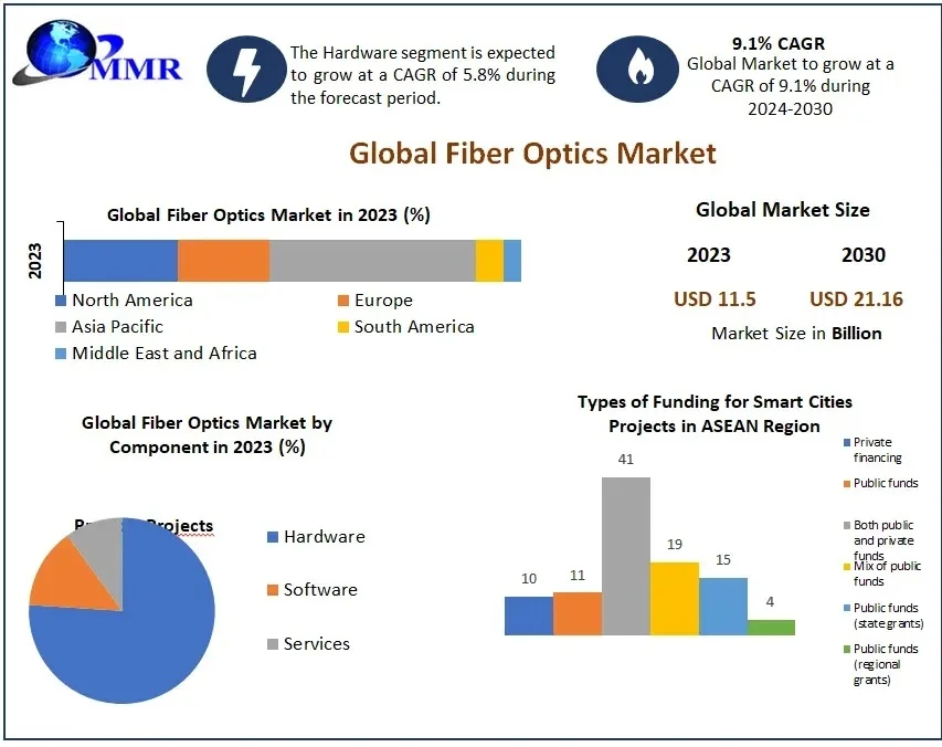 The global fiber optics market Size is experiencing significant growth, driven by the increasing demand for high-speed data transmission and the expansion of communication networks. According to Maximize Market Research, the market was valued at USD 11.5 billion in 2023 and is projected to reach approximately USD 21.16 billion by 2030, growing at a compound annual growth rate (CAGR) of 9.1% during the forecast period