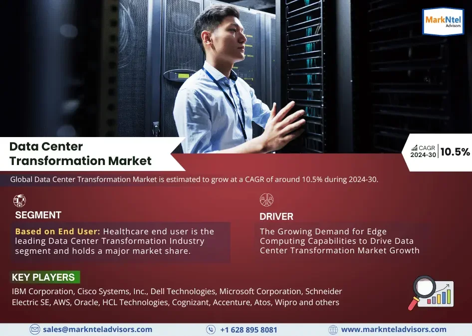 MarkNtel Advisors Research Analyses that Data Center Transformation Market is estimated to grow at a CAGR of around 10.5% during the forecast period, i.e., 2024-30.