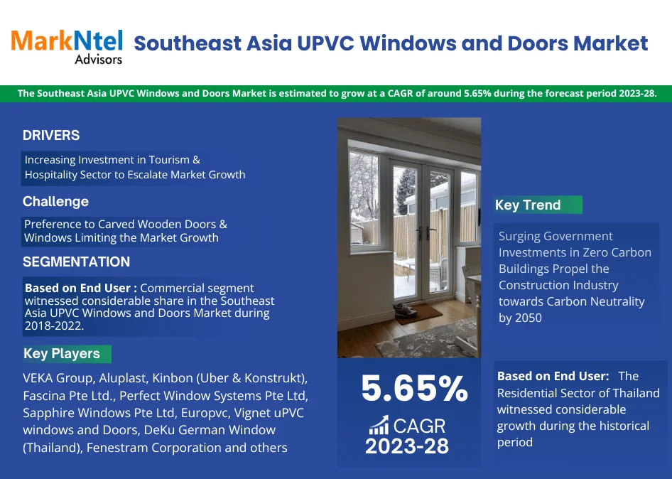 MarkNtel Advisors Research Analyses that Southeast Asia UPVC Windows and Doors Market is estimated to grow at a CAGR of around 5.65% during the forecast period, i.e., 2023-28.