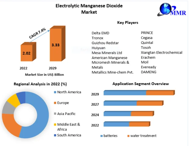 Electrolytic Manganese Dioxide Market is expected to grow at a CAGR of 7.4% during the forecast period and market is expected to reach US$ 3.33 Bn. by 2029.
