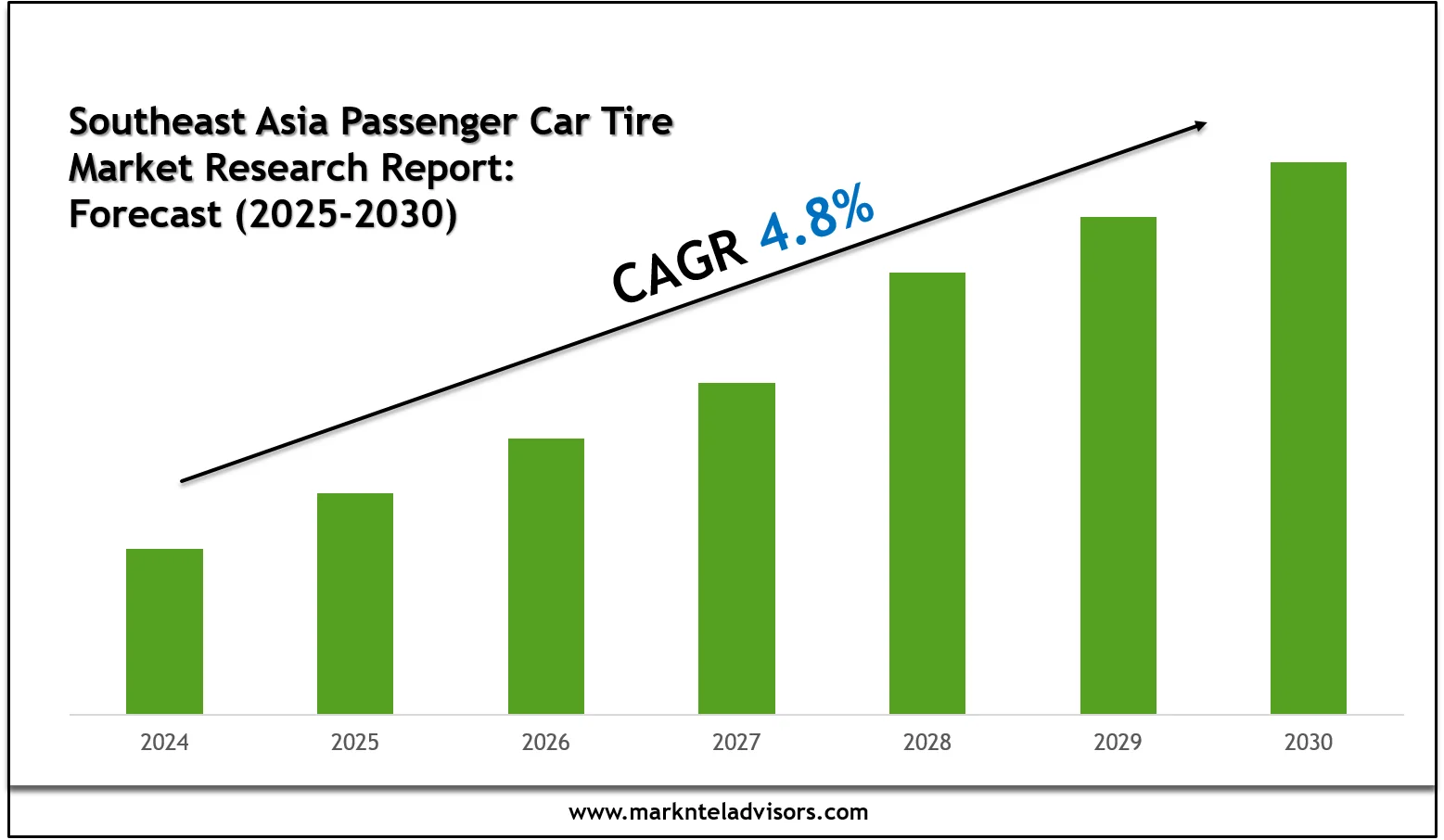 MarkNtel Advisors has released an in-depth report on the Southeast Asia Passenger Car Tire Market, offering critical insights into the market's size, growth, trend, projections, and emerging dynamics. This report delivers a comprehensive analysis of growth opportunities, competitive landscape, technological developments, and evolving consumer demands—equipping industry stakeholders with the data necessary to make informed decisions.
