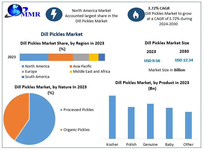 Valued at approximately $9.56 billion in 2023, the global Dill Pickles Industry is expected to expand to around $12.34 billion by 2030, growing at a compound annual growth rate (CAGR) of about 3.7%. Dill pickles — cucumbers preserved in a brine infused with dill — have become a beloved condiment around the world, enhancing everything from sandwiches and snacks to gourmet appetizers.