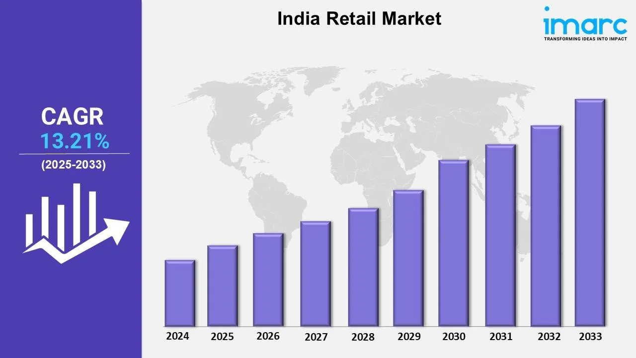 India retail market is rapidly expanding due to rising incomes, urbanization, e-commerce growth, and evolving consumer preferences across sectors. According to the latest report by IMARC Group, the market is projected to grow at a CAGR of 13.21% from 2025 to 2033.