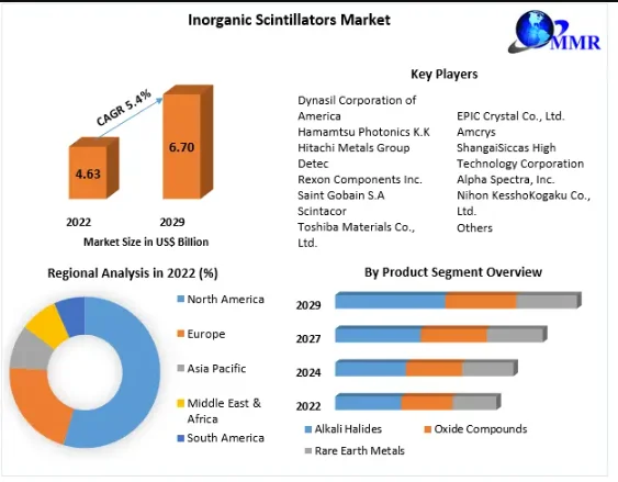 Inorganic Scintillators Market size is expected to reach nearly US$ 6.70 Bn. by 2029 with the CAGR of 5.4% during the forecast period.