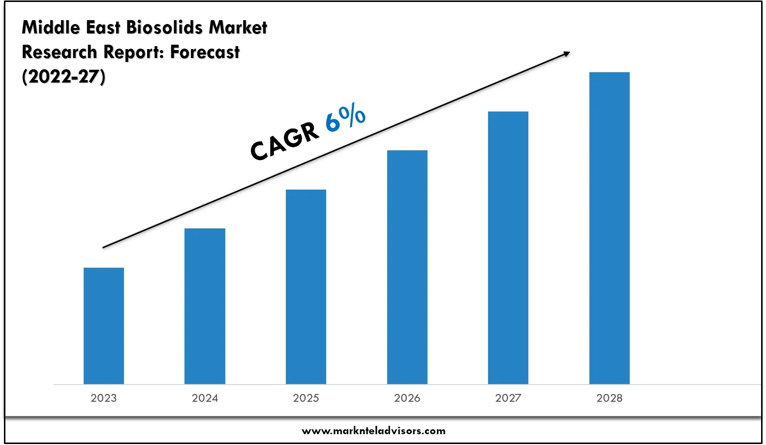 The Middle East Biosolids Market is projected to grow at a CAGR of around 6% during the forecast period, i.e., 2022-27.
