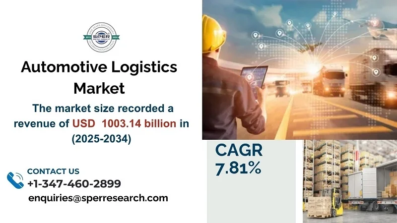 According to SPER market research, ‘Global Automotive Logistics Market Size- By Type, By Distribution, By Logistic Solution - Regional Outlook, Competitive Strategies and Segment Forecast to 2033’ state that the Global Automotive Logistics Market is predicted to reach 1003.14 billion by 2034 with a CAGR of 7.81%.