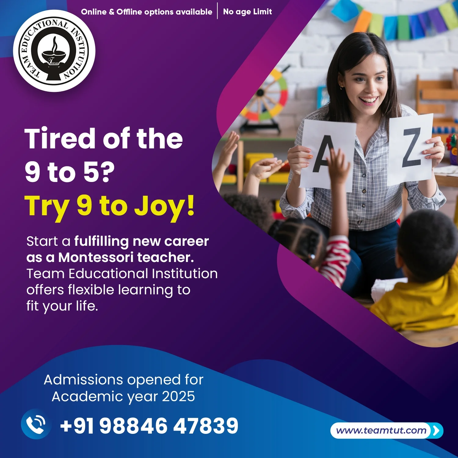 Take the next step towards your dream career by joining Team Education Institute, the most trusted Montessori training institute in Chennai. Call us today to know more about admissions, course details, and batch timings.