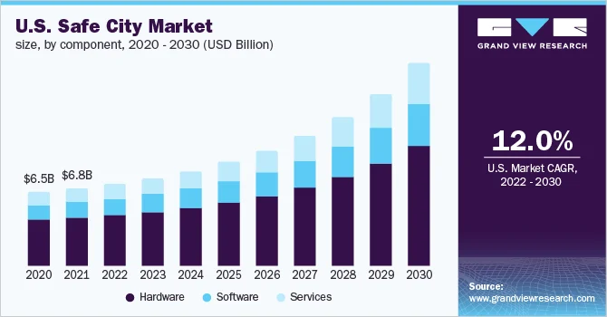 The global safe city market size was valued at USD 27.28 billion in 2021 and is projected to reach USD 87.07 billion by 2030, growing at a CAGR of 14.5% from 2022 to 2030. This growth is primarily driven by increased government spending on urban safety and security initiatives, along with the rapid development and integration of advanced technologies such as Artificial Intelligence (AI), big data analytics, and cloud computing.