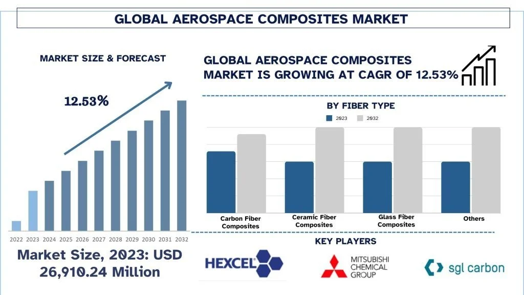 According to a new report by Univdatos Aerospace Composites Market are expected to reach USD Million in 2032 by growing at a CAGR of 12.53%. With the rising demand for Aerospace composites from the military as well as commercial aircraft segment as well as the emerging trend of electric aircraft, the demand for Aerospace Composites is anticipated to grow exponentially.