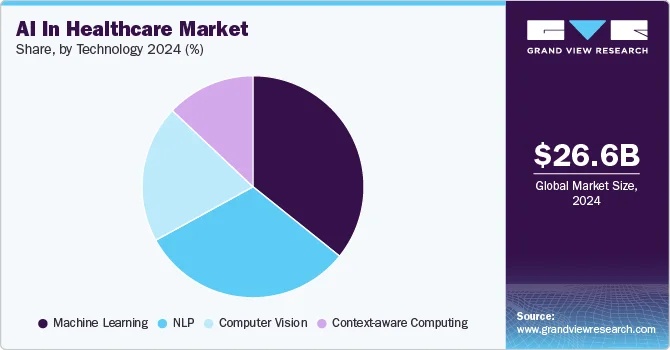 • Regarding technology, the machine learning segment held the largest market share of over 35% in 2024. The healthcare industry generates vast amounts of data, including electronic health records (EHRs), medical imaging, genomic data, and data from wearable devices.