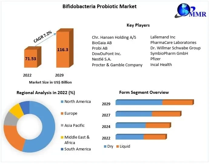 Bifidobacteria Probiotic Market size is expected to reach US$ 116.3 Bn in year 2029, at a CAGR of 7.2% during the forecast period.