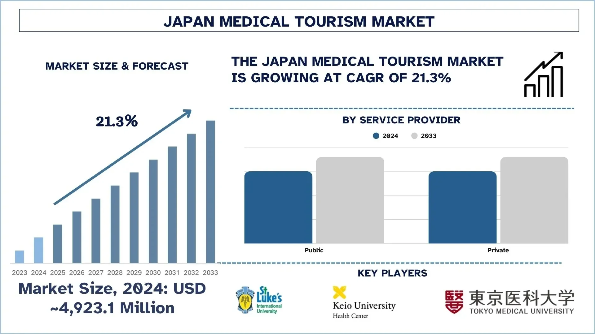 · Strong Private Sector: The private sector has a substantial share in the Japan medical tourism market as it provides specialized medical care, multilingual services, and premium medical packages for wealthy patients.