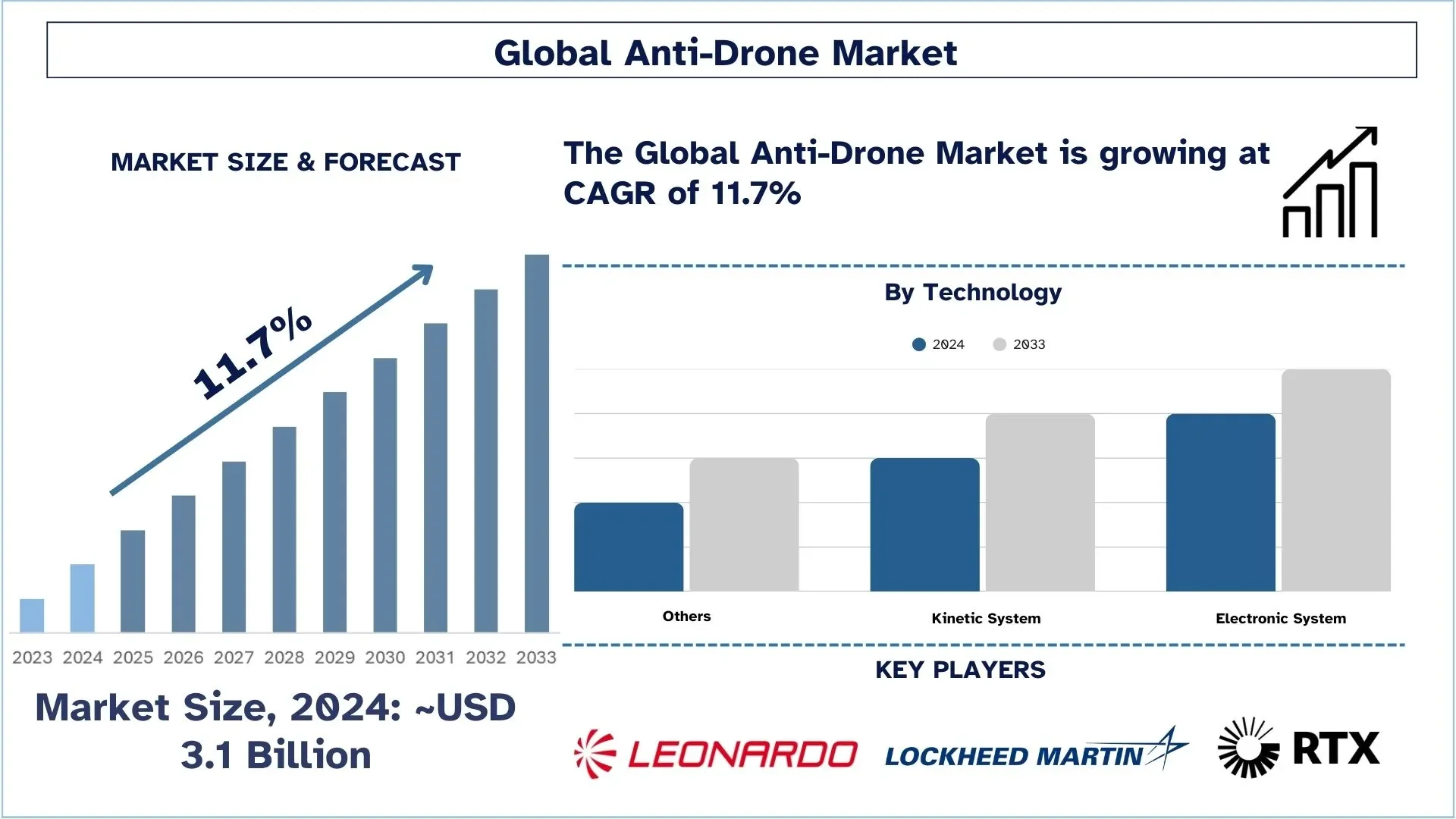 With major players like RTX, Lockheed Martin, Leonardo, Thales, and Rafael leading the charge, the anti-drone market is set to experience transformative growth in the coming years. These companies are not just responding to today’s threats—they’re preparing for the increasingly sophisticated drone challenges of tomorrow.