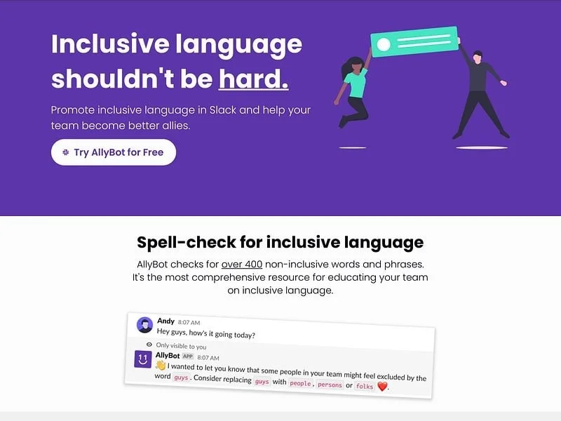 Modern tools like Allybot integrate directly into communication platforms such as Slack, making inclusion part of the daily workflow. Instead of requiring extra training or manual checks, the guidance is baked right into the tools your team already uses.