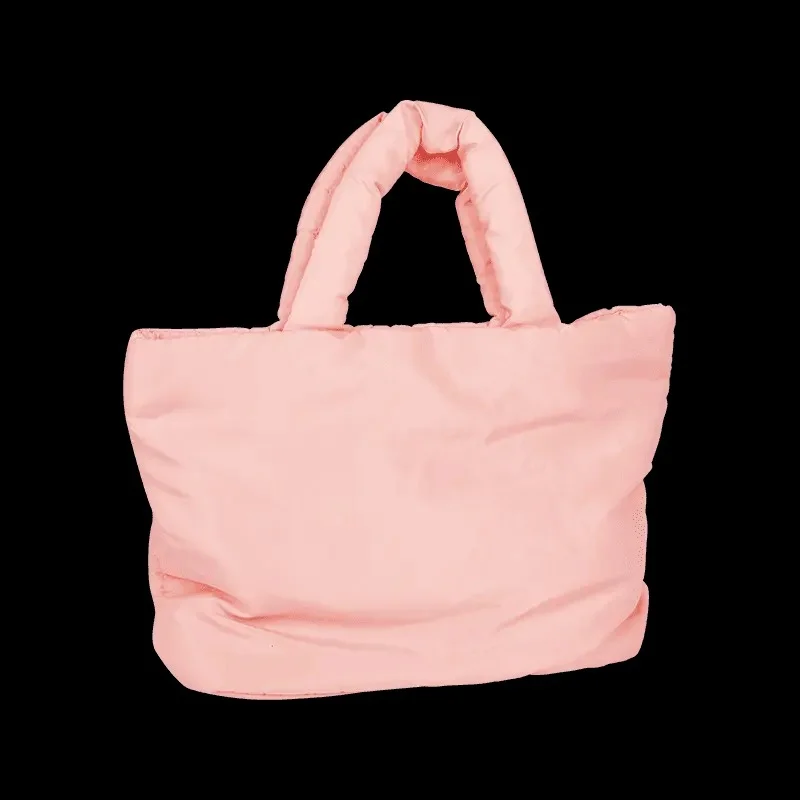 Introducing the Pink Down Tote Bag, a handbag that perfectly balances style, functionality, and comfort. This versatile handbag boasts a spacious interior, making it an ideal companion for daily use, whether you're heading to work, running errands, or enjoying a casual day out. The unique design of the Pink Down Tote Bag allows it to be carried as a shoulder bag or a handbag, providing flexibility to suit your needs and preferences. Its pink color and quilted material resemble a cozy down jacket, adding a touch of warmth and charm to your autumn and winter wardrobe. The soft, pillowy appearance of this handbag gives it a youthful and trendy vibe, desirable for those who love a girlish aesthetic.