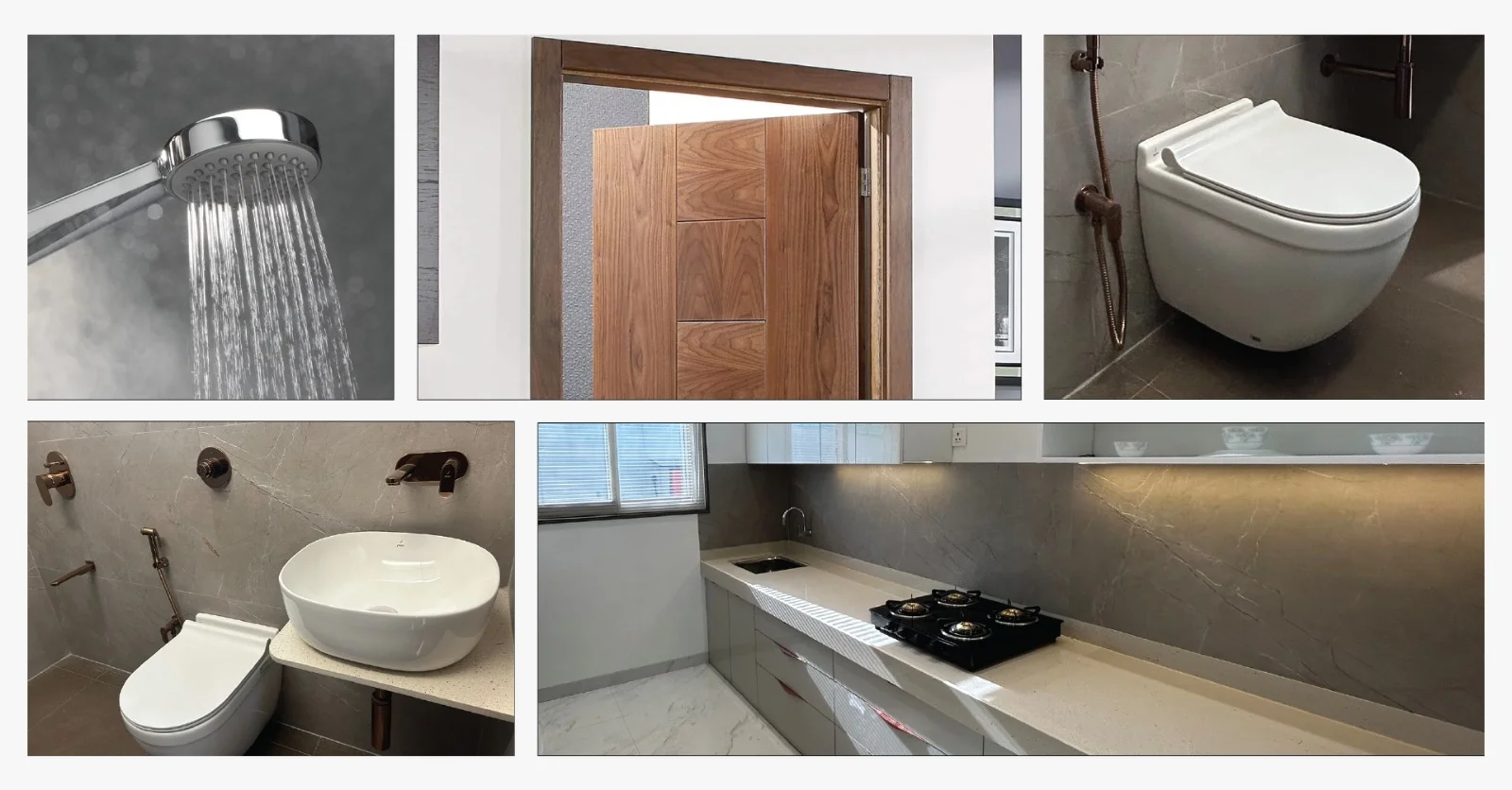 Doors play a vital role in security and design. Triton Residency ensures that every entrance is fitted with laminated flush doors for bedrooms and bathrooms, while the main door is crafted with a decorative veneer finish. These doors not only provide strength but also add a refined touch to your interiors.