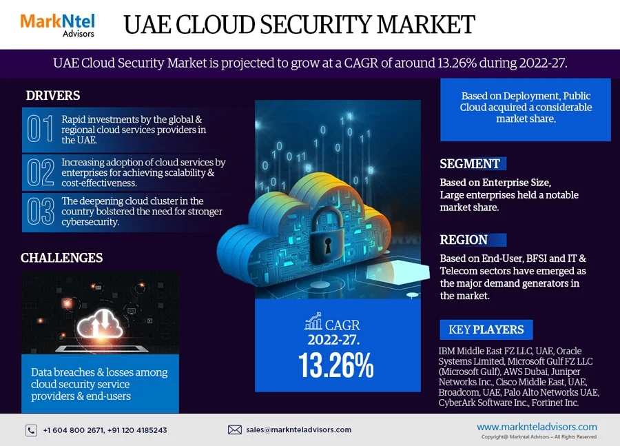 As per recent study by MarkNtel Advisors The UAE Cloud Security Market is projected to grow at a CAGR of around 13.26% during the forecast period, i.e., 2022-27.
