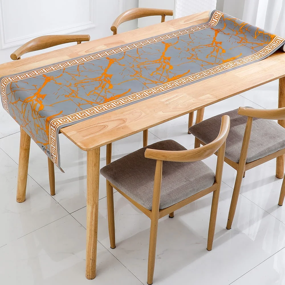 Meals often involve dishes that leave behind oil, sauces, or other residues. Traditional fabric tablecloths may absorb these stains, leading to frequent washing and eventual fading. The embossed gold independent table cloth, however, is designed to resist oil and common food stains. Instead of being absorbed, these substances remain on the embossed surface, making them easier to remove. This durability against staining helps the table cloth maintain its elegant appearance over time, even with frequent use.