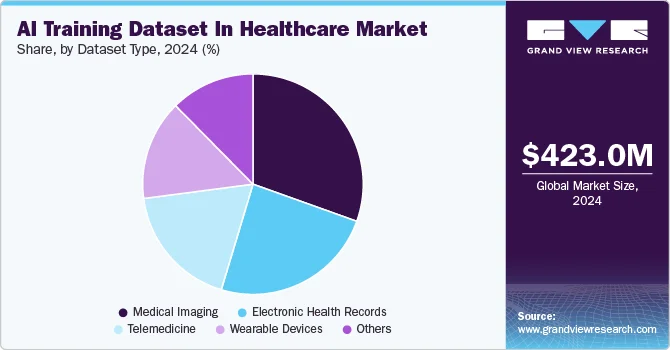- Dataset Type: Medical imaging has emerged as the dominant dataset type in 2024, driven by the rising demand for AI-driven diagnostic tools and advancements in imaging technologies. AI models trained on medical images such as X-rays, CT scans, and MRIs allow healthcare professionals to detect diseases like cancer, cardiovascular conditions, and neurological disorders with greater precision. The ability of AI to analyze complex imaging data quickly and accurately is transforming healthcare by enhancing early detection and improving treatment outcomes.