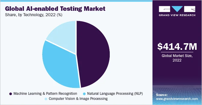 - Technology: The machine learning & pattern recognition segment was the largest with a 47% revenue share in 2022. This technology is being integrated into AI-enabled testing tools to help develop Self-Optimizing Networks (SON), which can automatically improve network quality based on traffic data.