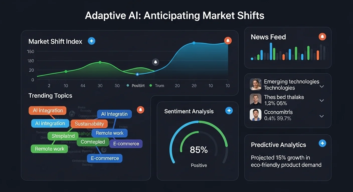 In volatile and competitive markets, anticipating shifts and trends is no longer optional—it is essential for survival and growth. Adaptive AI provides enterprises with the tools to move beyond reactive strategies, offering real-time insights, predictive forecasting, and prescriptive recommendations.