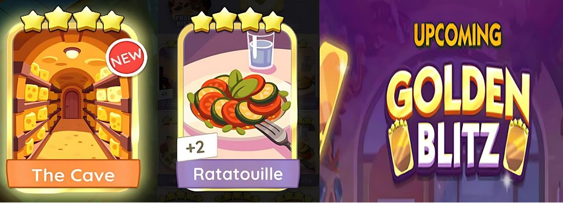 The designated gold stickers for Monopoly Go Golden Blitz event will go on sale on IGGM on September 29th, called "Set14 - Ratatouille and Set16 - The Cave"
