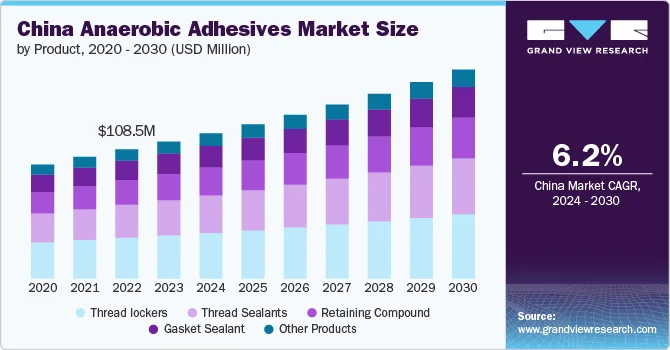 - The Asia Pacific also emerged as the fastest-growing market, with a CAGR of 6.5% from 2024 to 2030. The anaerobic adhesives market in North America is expected to grow at a significant CAGR during the forecast period, supported by a well-established automotive industry and a strong emphasis on technological advancements.