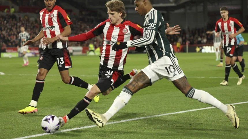 Völlig überraschend ging United in der Nachspielzeit durch einen Treffer des eingewechselten Mason Mount nach Vorlage von Mark Flekken in Führung.Im Gefühl des sicheren Sieges kassierte United drei Minuten später den Gegentreffer, als Ivan Toney den Ball im Strafraum für den ungedeckten Kristoffer Ajer zurücklegte, der mit seinem zweiten Treffer in zwei Spielen den Ausgleich erzielte."Wenn man kurz vor Schluss mit 1:0 in Führung geht, will man das natürlich beibehalten", sagte Mount. "Wenn man sich das Spiel insgesamt anschaut, war es nicht auf unserem Niveau. Das wissen wir. Wenn man kurz vor Schluss ein Tor schießt, denkt man, dass man es vielleicht noch schaffen kann. Aber vielleicht haben wir es nicht verdient."Raphinha führt Barcelona zum Sieg gegen Las Palmas und hält Kontakt zu Real Madrid Bayern Münchens Trainer Thomas Tuchel beglückwünscht Leverkusen und sagt, dass die Hoffnungen auf den Bundesliga-Titel vorbei sind Diaby führt Aston Villa in der EPL mit einem herrlichen Treffer gegen Wolves zum Sieg