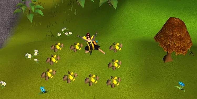 Through this method of role-playing players can add narratives and stories to their progression in levels. For example, those who begin as a miner apprentice might be tempted to move to a higher-level Mining spots once they have reached the appropriate level of Mining. Travelling to a new location can be a tale that is their own, as players are faced with numerous side quests on the journey.