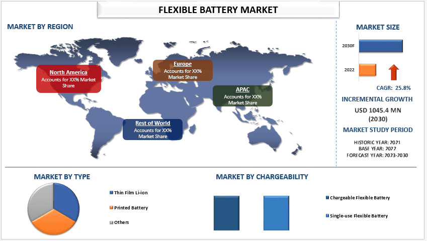 According to the UnivDatos analysis, the rising investment in smart cards and wearable electronics will drive the global scenario of the Flexible Battery market and as per their “Flexible Battery Market” report, the global market was valued at USD 165.9 Million in 2022, growing at a CAGR of 25.8% during the forecast period from 2023 - 2030 to reach USD 1,045.4 Million by 2030.