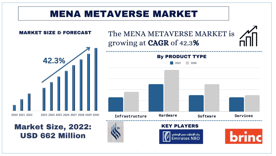 According to the UnivDatos analysis, the young demographics, urbanization, and government initiatives will drive the global scenario of the MENA Metaverse Market and as per their “MENA Metaverse Market” report, the market was valued at USD million in 2022, growing at a CAGR of 42.3% during the forecast period from 2023 - 2030 to reach USD billion by 2030.