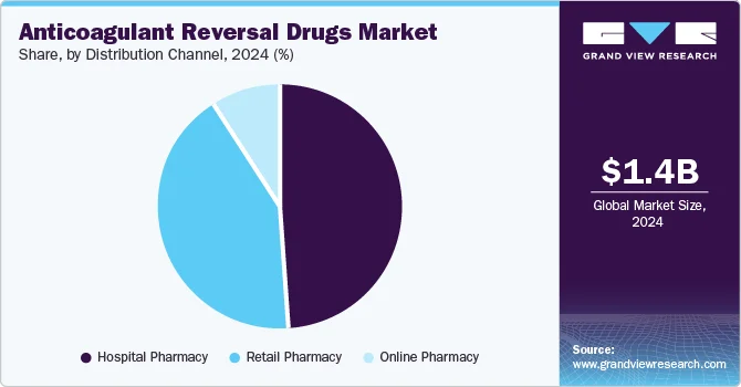 - Distribution Channel: Hospital pharmacies led the market with the largest revenue share of 48.6% in 2024, driven by the urgent need for immediate access to anticoagulant reversal agents in emergencies. Hospital pharmacies play a crucial role in direct patient care, with high demand for these drugs during urgent cases like major bleeding or surgical interventions.