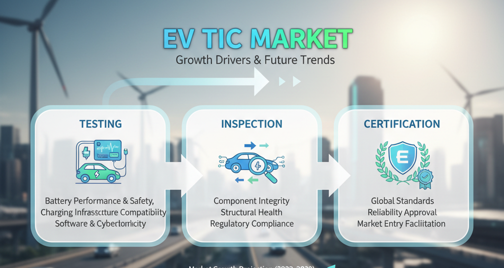 What are the key drivers for growth in the EV testing, inspection, and certification market?