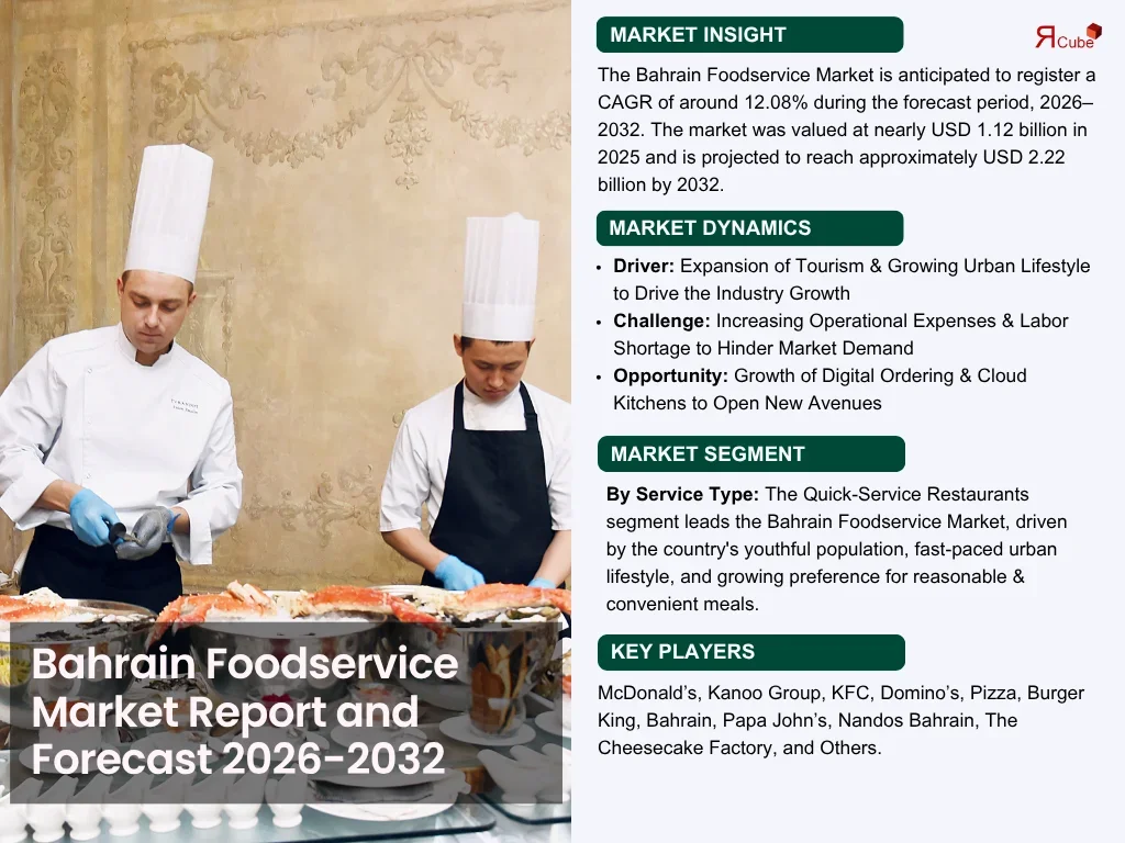 The Report Cube which is one of the leading market research company in UAE expects the Bahrain Foodservice Market to grow at a CAGR of around 9.13%% through 2032, as highlighted in their latest research report. The study provides an in-depth analysis of the emerging trends shaping the Bahrain Foodservice Market and offers detailed forecasts for its potential growth during 2025–2032. The report also presents a comprehensive assessment of the competitive landscape, including profiles of leading players, their performance metrics, and recent strategic developments. Additionally, it explores the key market drivers, challenges, opportunities, and provides insights into historical and future revenue trends at the global, regional, and country levels.
