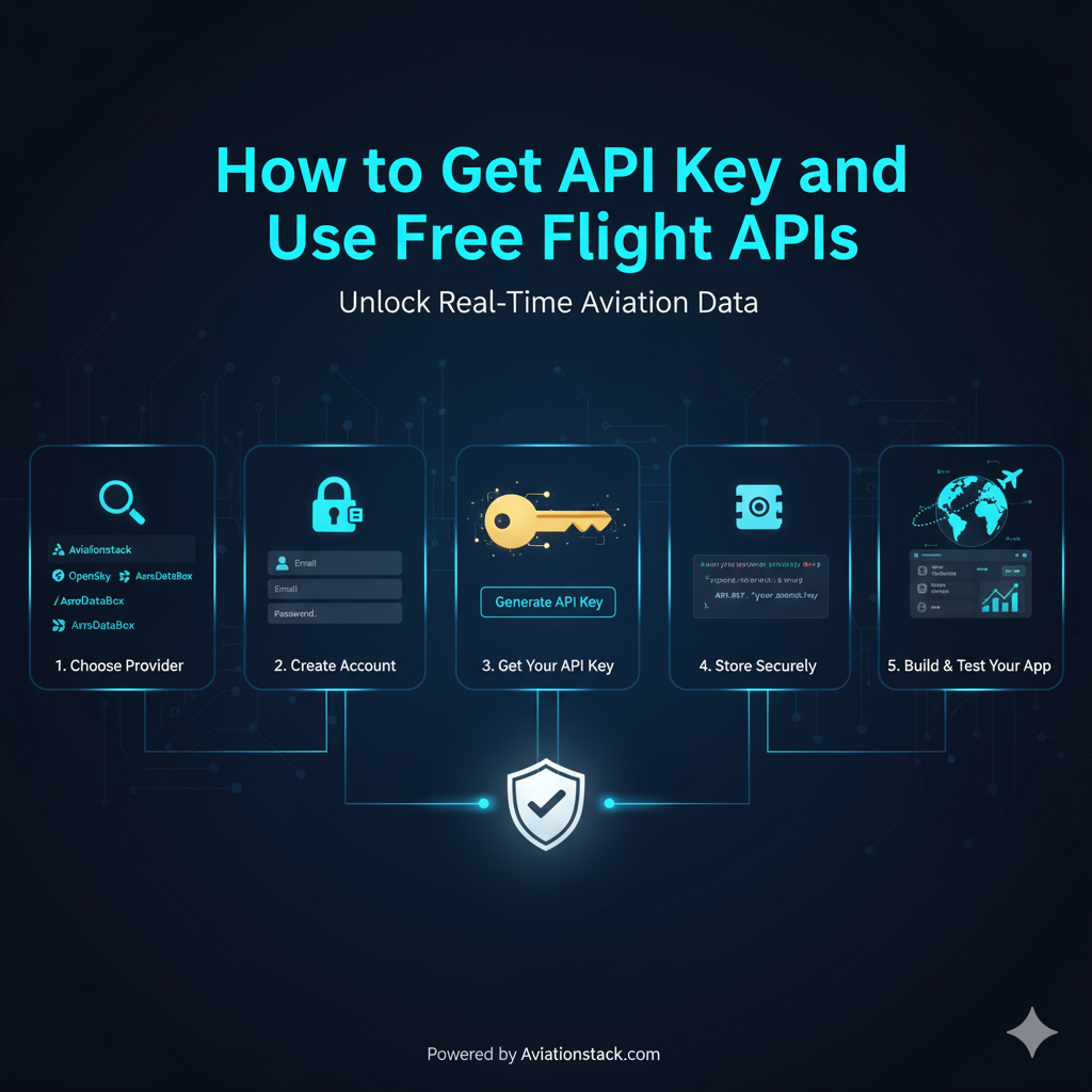 You can register on a provider’s website like Aviationstack, verify your email, and generate your key from the dashboard.