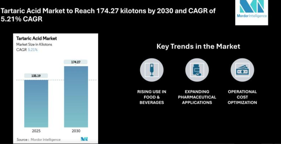 Mordor Intelligence has published a new report on the "Tartaric Acid Market" offering a comprehensive analysis of size, share, trends, growth drivers, and future projections.