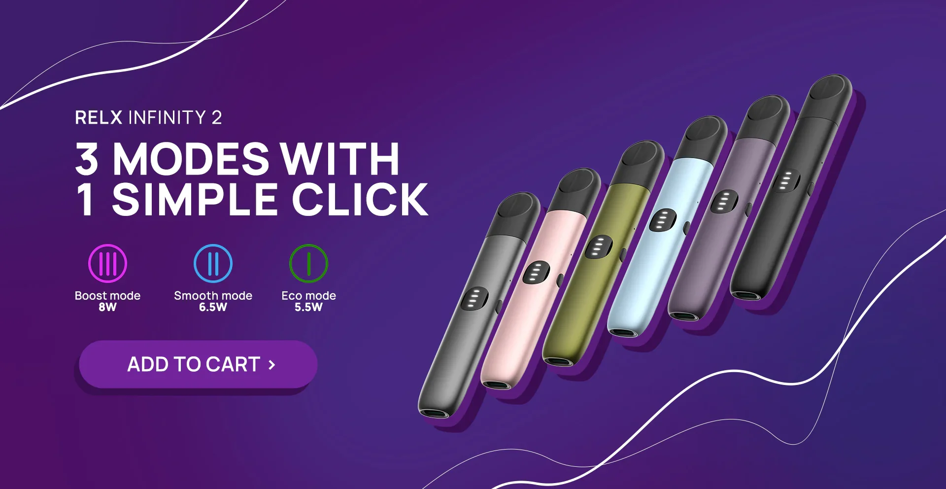 relx infinity: พลังแห่งนวัตกรรมการสูบรุ่นนี้มาพร้อมกับระบบ Active-steam Pro ที่กระจายควันสม่ำเสมอทุกคำ พร้อมแบตเตอรี่ 380 mAh ใช้งานได้ทั้งวันแบบไม่ต้องชาร์จบ่อย