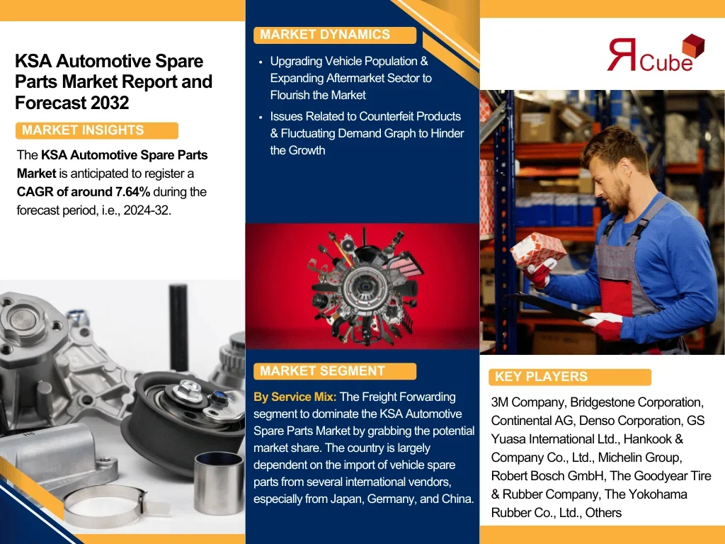 The KSA Automotive Spare Parts Market is anticipated to register a CAGR of around 7.64% during the forecast period, i.e., 2024-32.
