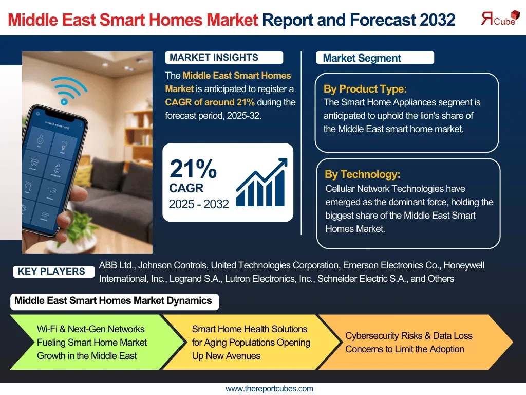 The Middle East Smart Homes Market is anticipated to register a CAGR of around 21% during the forecast period, 2025-32.