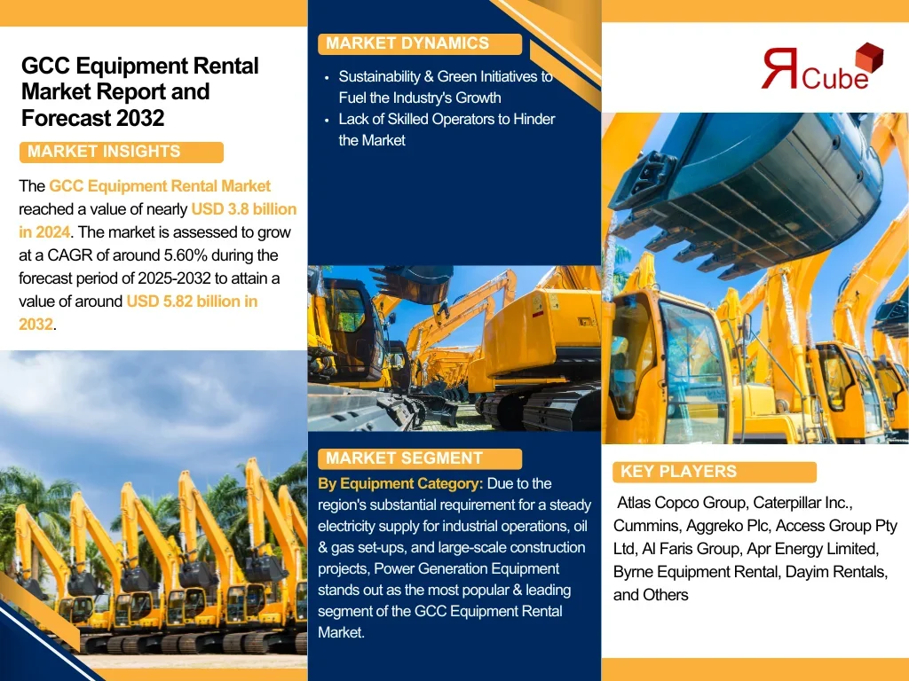 The GCC Equipment Rental Market reached a value of nearly USD 3.8 billion in 2024. The market is assessed to grow at a CAGR of around 5.60% during the forecast period of 2025-2032 to attain a value of around USD 5.82 billion in 2032.