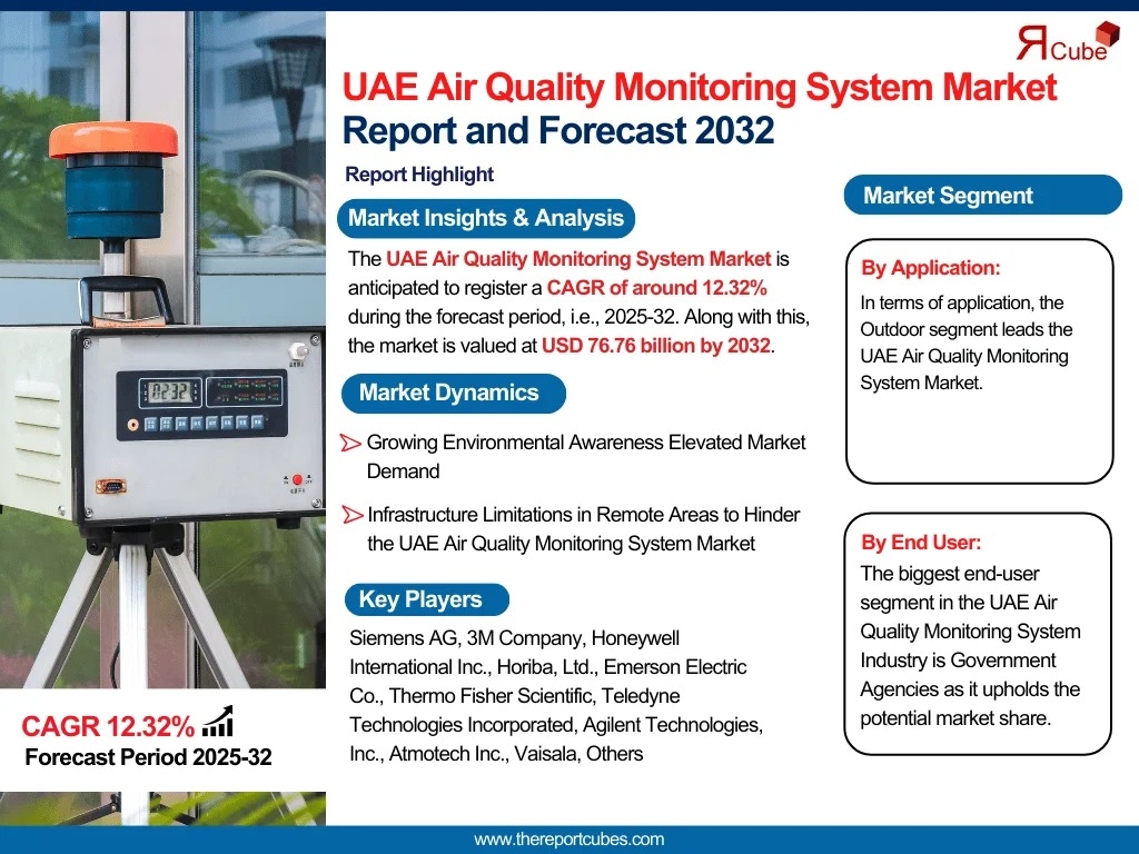 The Report Cube which is one of the leading market research company in UAE expects the UAE Air Quality Monitoring System Market to grow at a CAGR of around 12.32% through 2032, as highlighted in their latest research report. The study provides an in-depth analysis of the emerging trends shaping the UAE Air Quality Monitoring System Market and offers detailed forecasts for its potential growth during 2024–2032. The report also presents a comprehensive assessment of the competitive landscape, including profiles of leading players, their performance metrics, and recent strategic developments. Additionally, it explores the key market drivers, challenges, opportunities, and provides insights into historical and future revenue trends at the global, regional, and country levels.