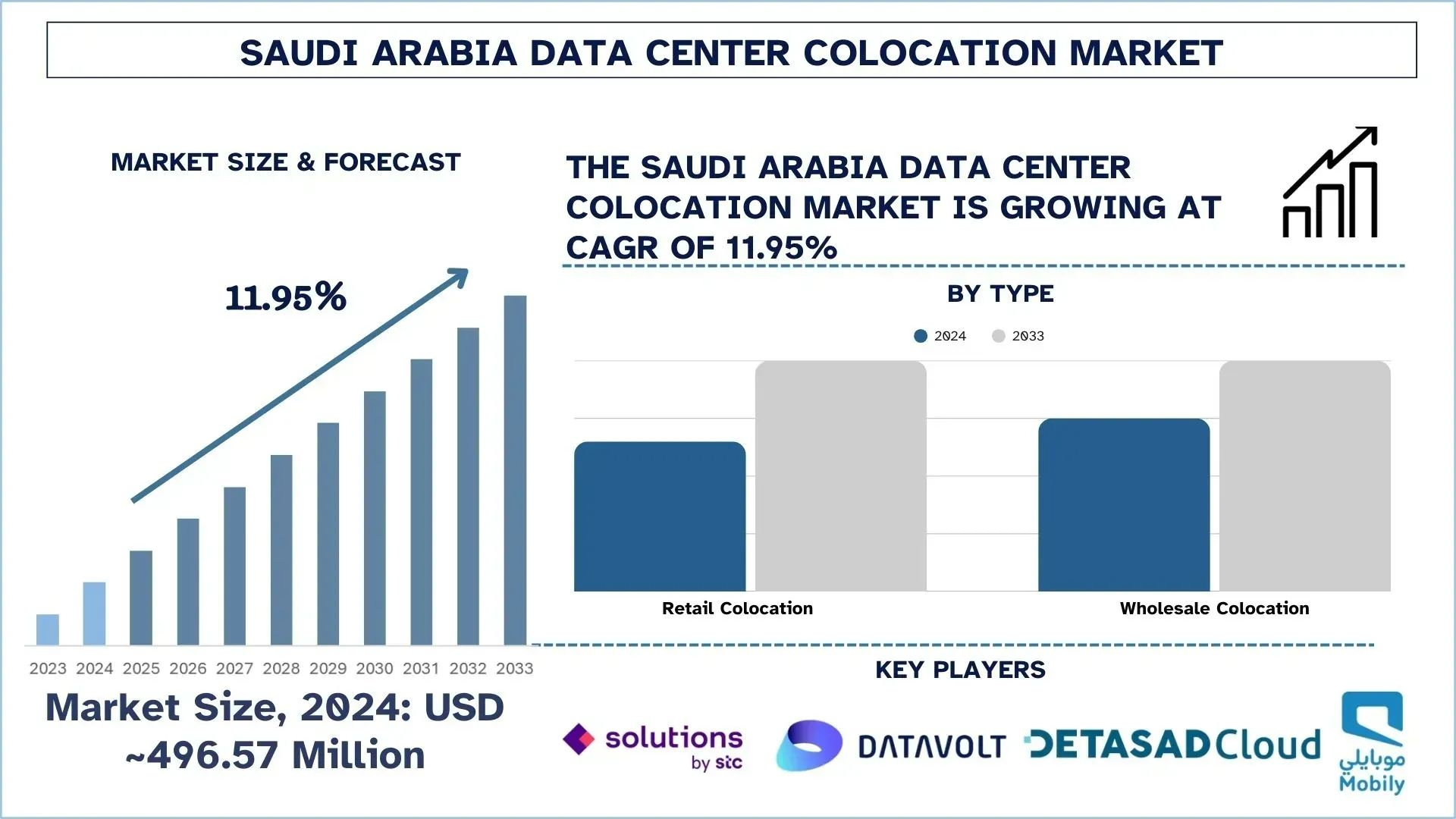 According to UnivDatos, Vision 2030 initiatives accelerating digital infrastructure and smart city development, growing cloud adoption and hybrid IT strategies across industries, rising demand for data localization due to regulatory and compliance requirements, expansion of digital banking and fintech driving secure hosting needs, and rapid growth of e-commerce and online platforms requiring scalable infrastructure drive the Saudi Arabia Data Center Colocation market. As per their “Saudi Arabia Data Center Colocation Market” report, the market was valued at USD 496.57 Million in 2024, growing at a CAGR of about 11.95% during the forecast period from 2025 - 2033 to reach USD Million by 2033.