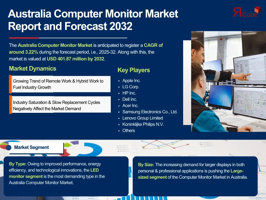 The Australia Computer Monitor Market is anticipated to register a CAGR of around 3.22% during the forecast period, i.e., 2025-32.