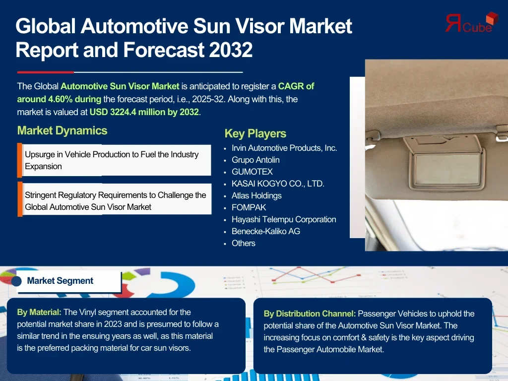 The Global Automotive Sun Visor Market is anticipated to register a CAGR of around 4.60% during the forecast period, 2025-32.