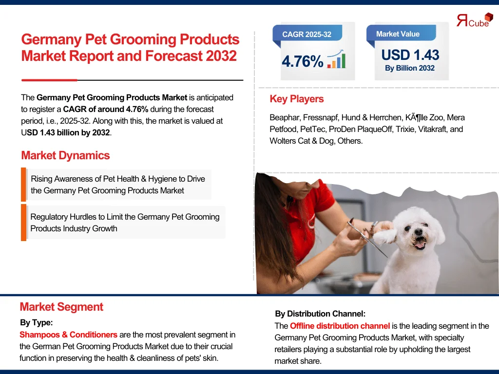 The credible Germany Pet Grooming Products Market report covers detailed insights into market size, share, trends, and opportunities. This research helps businesses make informed decisions, strengthen their strategies, and expand their reach in a competitive landscape. The analysis estimates market growth based on evolving dynamics and demand drivers.