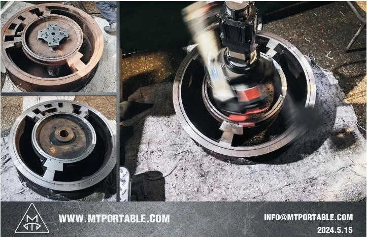 Are you frequently faced with the challenge of machining flanges without internal bores on-site? In such scenarios, the standard base assembly equipped with internally mounted flange facing machines prove inadequate for installation. Operators are left to devise their own methods for machine setup, while also evaluating the stability and safety of such installations. The images displayed depict the installation of a blind flange. With no pipe or hole in the center, the equipment cannot be supported within the internal bore using standard base kits. To address this issue, we crafted an installation plate with adjustable devices, subsequently spot-welding it onto a non-critical surface of the workpiece. We have successfully completed this task and are sharing this installation method with our customers.
