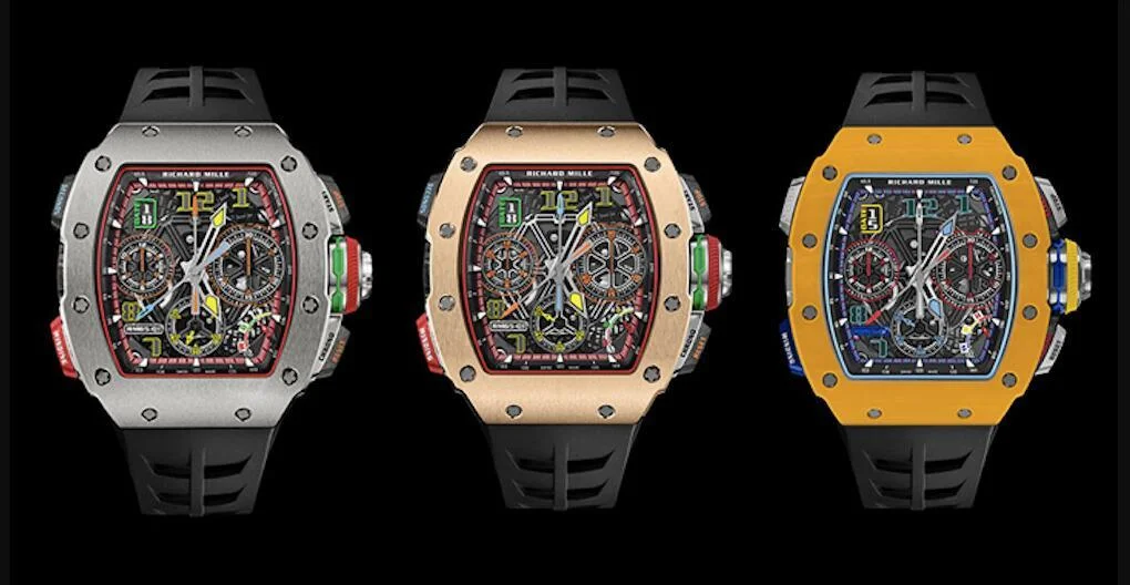 The RM 65-01 Automatic Split-Seconds Chronograph in dark yellow Quartz TPT® and light blue Quartz TPT® brings you a summer season full of sensations and activities.